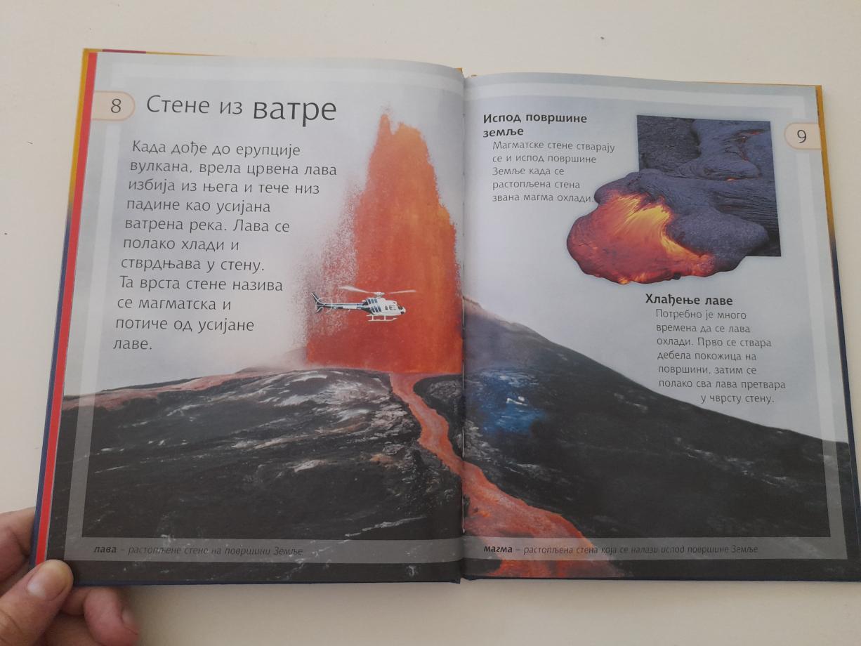 Zemljina kora sastoji se od stena. Neke stene tvrde su i čvrste, poput granita, druge su meke poput peska. Sve stene sastoje se od minerala. Stene se menjaju kad se zagrevaju duboko ispod površine Zemlje pa njihovi kristali postaju veći. Klimatski uslovi oštećuju stene. One se skupljaju na hladnoći, a šire na toploti. Kišnica ulazi u pukotine stena. Kad se voda zaledi, led širi pukotine i stena se mrvi. A gde su tu fosili? I, šta su fosili? Kako oni nastaju? Saznaćete ako pročitate knjigu Stene i fosili. Na kraju svake knjige, nalazi se praktični uradi-sam zadaci; samo prati uputstva i moći ćeš i ti da napraviš fosil, otisak u steni i još mnogo toga. . .
