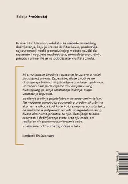 „Zov divljine“ Kimberli En Džonson je snažna, inspirativna i duboko transformativna knjiga o isceljenju od traume, telesnoj svesnosti i buđenju iskonske ženske snage, namenjena ženama koje osećaju da su izgubile kontakt sa sopstvenim telom, instinktima i unutrašnjom vitalnošću. Autorka polazi od ideje da se trauma ne zadržava samo u sećanjima i mislima, već se duboko upisuje u telo, utičući na način na koji dišemo, krećemo se, doživljavamo dodir, osećamo zadovoljstvo i povezujemo se sa sobom i drugima, zbog čega put isceljenja ne može biti isključivo mentalan, već mora započeti upravo u telu.